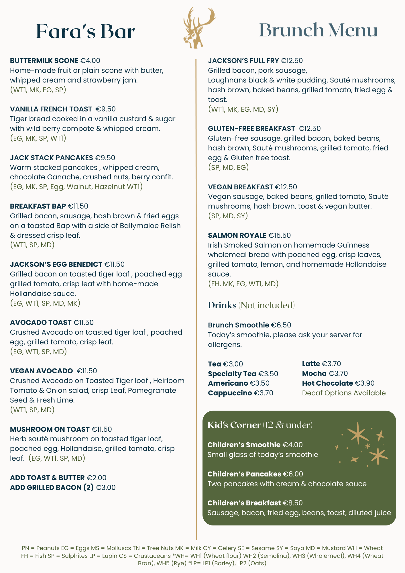 Saturday, Sunday & Monday: 10.30am - 2:00pm Brunch Menu